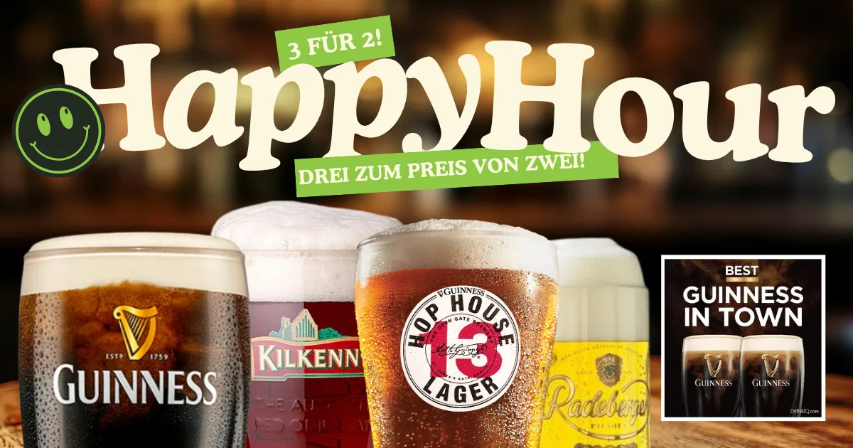 Ausgewählte Spirituosen: Longdrinks & Shots: Finlays Gin & Tonic, Havana Club & Cola, Paddy’s Irish Whiskey (mit Mixer oder pur), Tullamore Dew Irish Whiskey (mit Mixer oder pur)